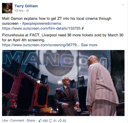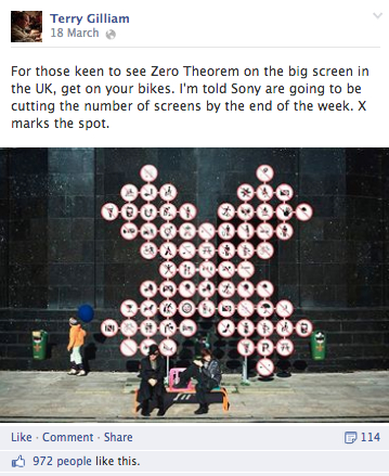 Proof of demand, management of uncertainty, dealing with risk – however the core concern of the film business is labelled, the release of Terry Gilliam’s latest film: The Zero Theorem provides a rich insight into the tensions still at play in the Film Value Chain.